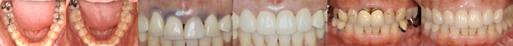 以前治療した保険の前歯の再治療を希望して来院されました。 検査の結果、噛み合わせ、歯周病など他のところにも悪いところがあり最終的にはお口の中全体を治療しました。