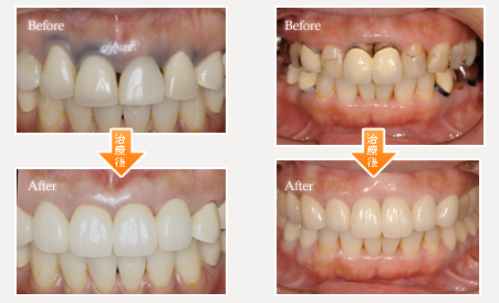 ラミネートベニア、セラミッククラウン、といった被せ物、ひいては全体的な噛み合わせを治療して、失ったきれいな笑顔を取り戻す治療迄、と様々です。
