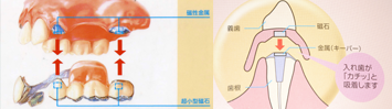 またインプラント(人工歯根)にも磁石をつける技術が開発され残りの歯が少ない場合や、総義歯にも応用できるようになりました。
